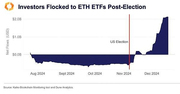 eth 将成为华 盛顿特区政权更迭的最大赢家之一。虽然今年它落后于比特币,但美国政府更迭带来的监管转变将使市值第二大资产受益匪浅。 eth 分类、商品或证券以及质押的明确性可能是明年增长的两个主要驱动力。