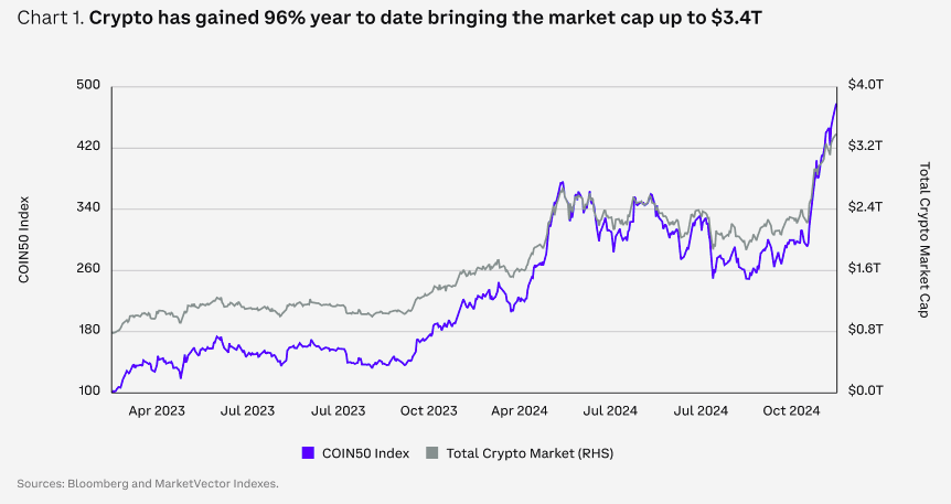 考虑到仅在一年前,这一资产类别还在因加息、监管打击和不确定的前进道路而步履蹒跚,加密货币的进步更加令人印象深刻。尽管面临所有这些挑战,但加密货币已成为一种稳固的另类资产,证明了加密货币的韧性。