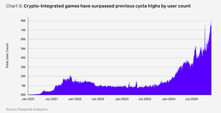 然而,与上一周期相比,整合了加密货币的游戏已经有了很大的进步。这一趋势的核心是从早期的加密朋克精神“完全在链上拥有你的游戏”转向有选择地将资产放在链上,从而在不影响游戏玩法本身的情况下解锁新功能。事实上,许多杰出的游戏开发者现在更多地将区块链技术视为一种便利工具,而不是营销工具。