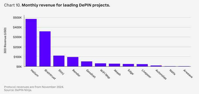 这些网络的长期收入和可持续性应该根据具体情况进行评估。depin不是资源配置的万能药,因为行业痛点可能有很大差异。例如,追求去中心化策略可能不适用于某个行业,或者它可能只解决该行业中的一小部分问题。这个领域可能在网络采用、代币效用和产生的收入之间存在广泛的差异——所有这些都可能与他们所针对的底层行业有关,而不是他们使用的底层技术网络。