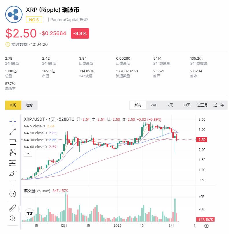瑞波币xrp今日最新价格行情