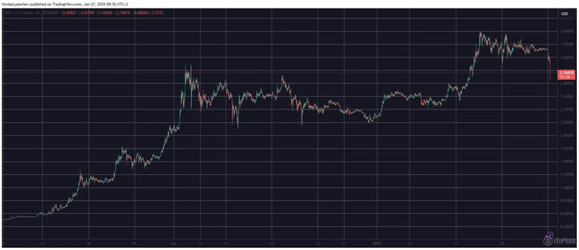 在美国大选后,xrp作为市场表现最好的代币之一,受到了广泛关注。近期的消息称xrp有望被纳入美国的数字资产储备,进一步推高了xrp的价格,尤其是在11月初价格接近0.6美元时,到1月价格一度触及3.4美元,接近2018年的历史高点。
