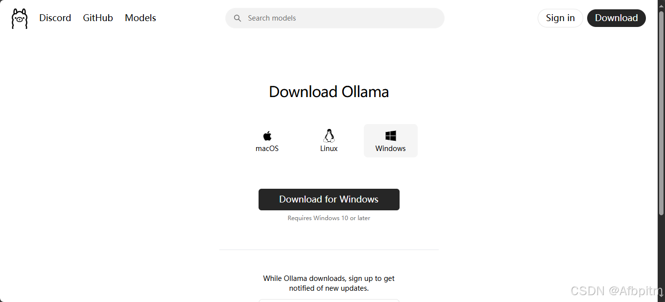 然后再次回到ollama的官网(不要关闭命令提示符)
