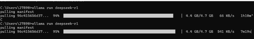 如果你发现下载速度很慢,可以按 ctrl + c 中断当前的下载命令,然后重新输入相同的命令再次启动下载。值得注意的是,重新开始下载时,系统通常会从上次下载的进度继续进行,因此你不需要从头开始下载。在我重新尝试下载后,下载速度明显提高了一些。