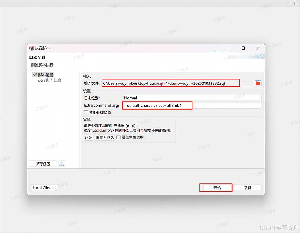 mysql 默认以 gbk 编码连接数据库,之前导出备份文件是 utf8 编码,编码不一致导致错误。