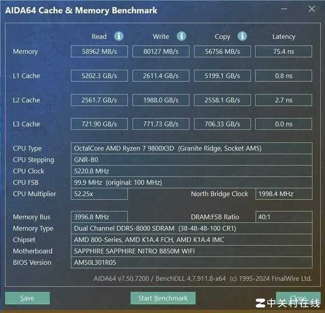 除了expo预设,我们也测试了这款主板上axmp能力,蓝宝石nitro+ 氮动 b850m wifi主板能轻松让xmp内存达到8000mt/s。