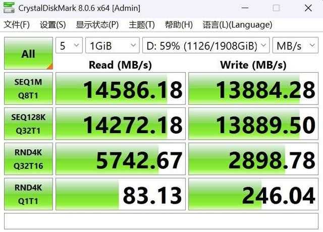 我们使用的致态tipro9000 2tb没有马甲,而且不是空盘,依旧可以跑出14586.18mb/s的连续读速和13884.28的连续写入速度。说明蓝宝石nitro+ 氮动 b850m wifi主板的m.2装甲散热效率很高,带宽也能支持pcie 5.0固态跑满。