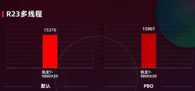 可以看到锐龙7 9800x3d在开启pbo后分数从15376提升到了15907,pbo对于这款处理器的基准跑分确实有一定提升。