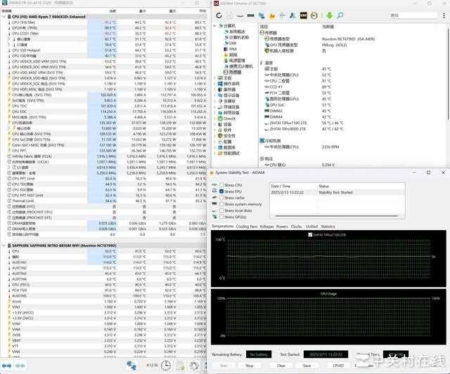 最后我们针对蓝宝石nitro+ 氮动 b850m wifi主板的供电散热模组进行抗压拷机测试,虽然锐龙7 9800x3d普遍功耗不高,不过我们这颗体质较雷,温度会比常规型号高一些,因此对于这款主板也是一个小挑战。