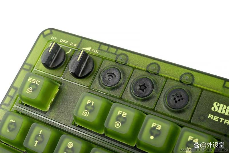 无线切换旋钮、音量旋钮、蓝牙配对按钮、超级按键定义按钮