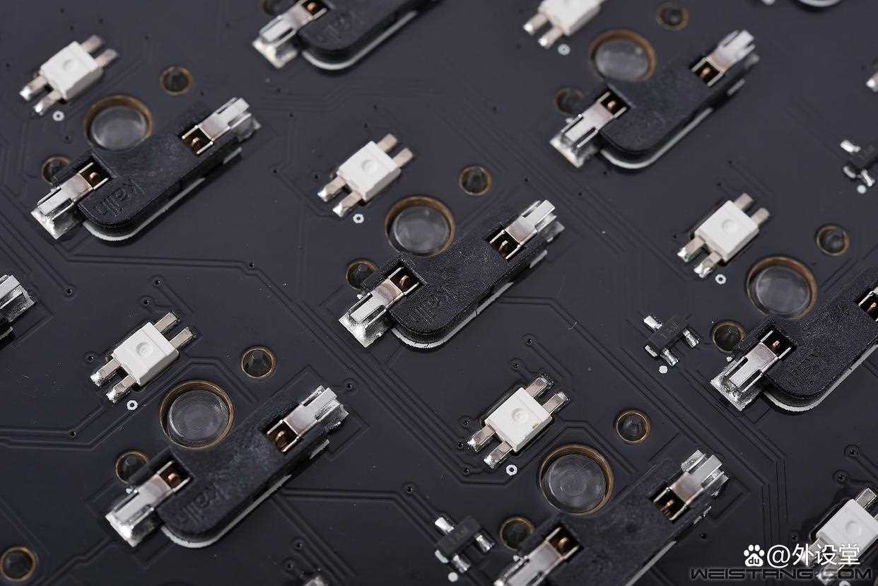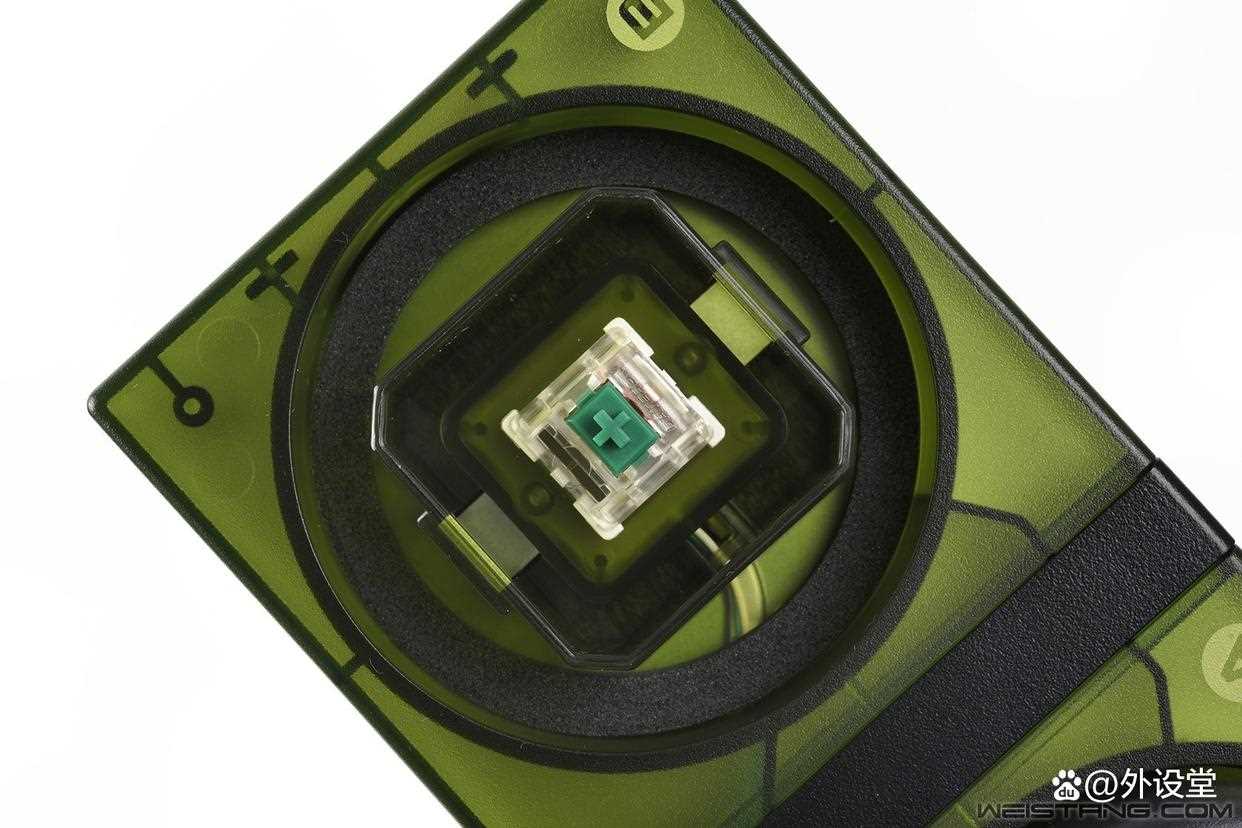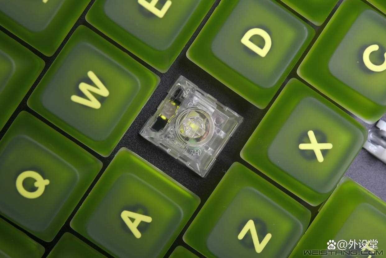 凯华水母段落轴,类青轴手感,有清脆的弹片段落音,轴体全透明结构,47g触发力,1.8mm触发行程、3.6mm触底行程,标称寿命1亿次。