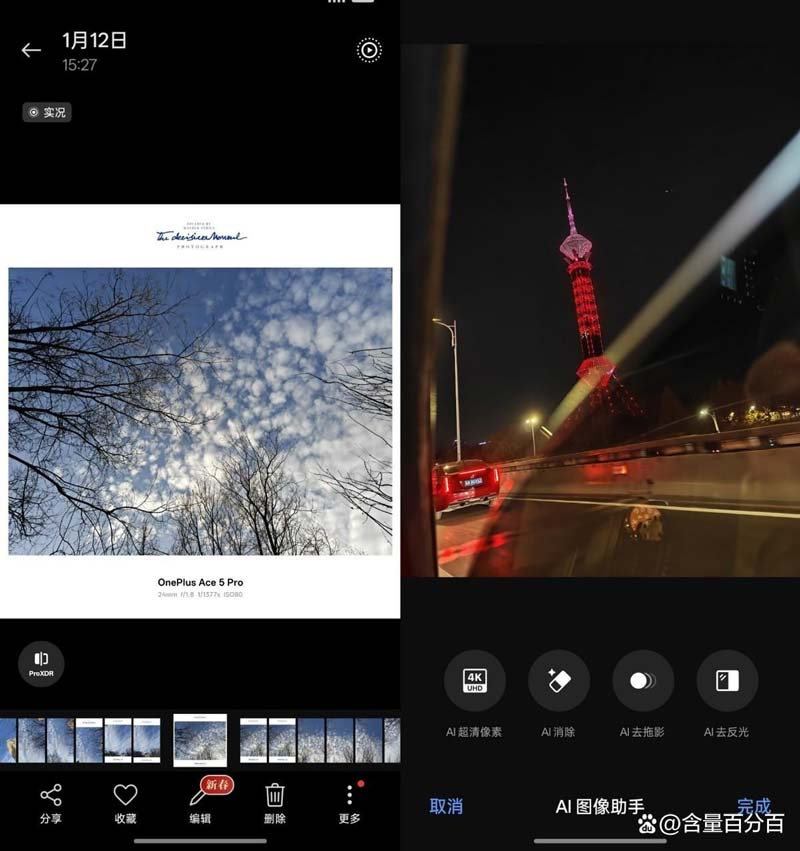 这两款手机都支持ai影像和live photo功能,可以更加方便的进行快速修图以及发一些动态图片,下图以一加ace 5 pro进行演示。