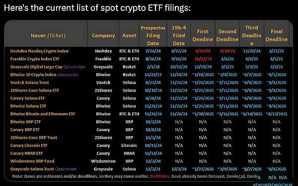 下图为 2024 年 12 月 3 日的现货加密货币 etf 备案清单