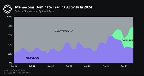 最后同样重要的一个原因是,meme币(以及最近的ai agents)。