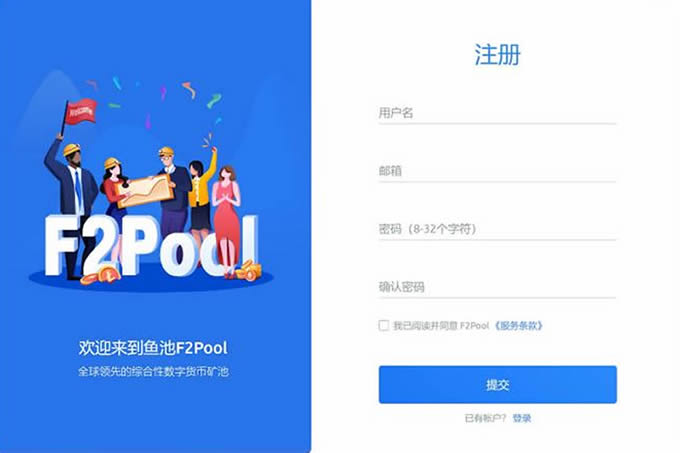 首先,你需要打开所选矿池的官方网站(如鱼池f2pool),点击右上角的注册按钮进行注册。注册完成后,登录网站并查看自己的账号和当前矿工的算力。