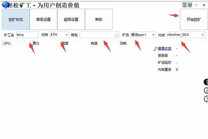 接下来,需要对软件进行一些设置。在设置界面中,你需要填写矿工名称、币种、钱包地址以及矿池等信息。