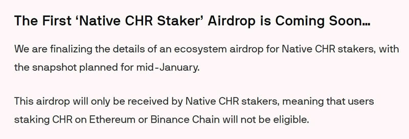 未来也许会有更多项目跟进,如果原本已质押$chr 的可以趁机转到主网上质押。