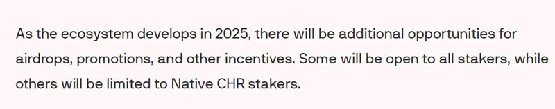chromia 主网2024 / 7 月上线,主网上线后才开始支援主网代币与质押,近期完成asgard 升级后,官方接着公布了原生质押空投coming soon。