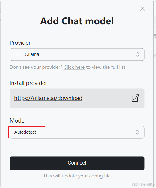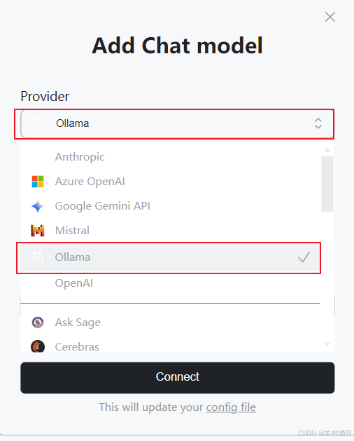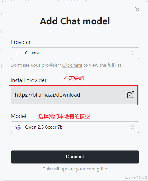 6. 选择我们本地有的模型,后面的7b可以不用管,只是名字的差别,最后点击connect