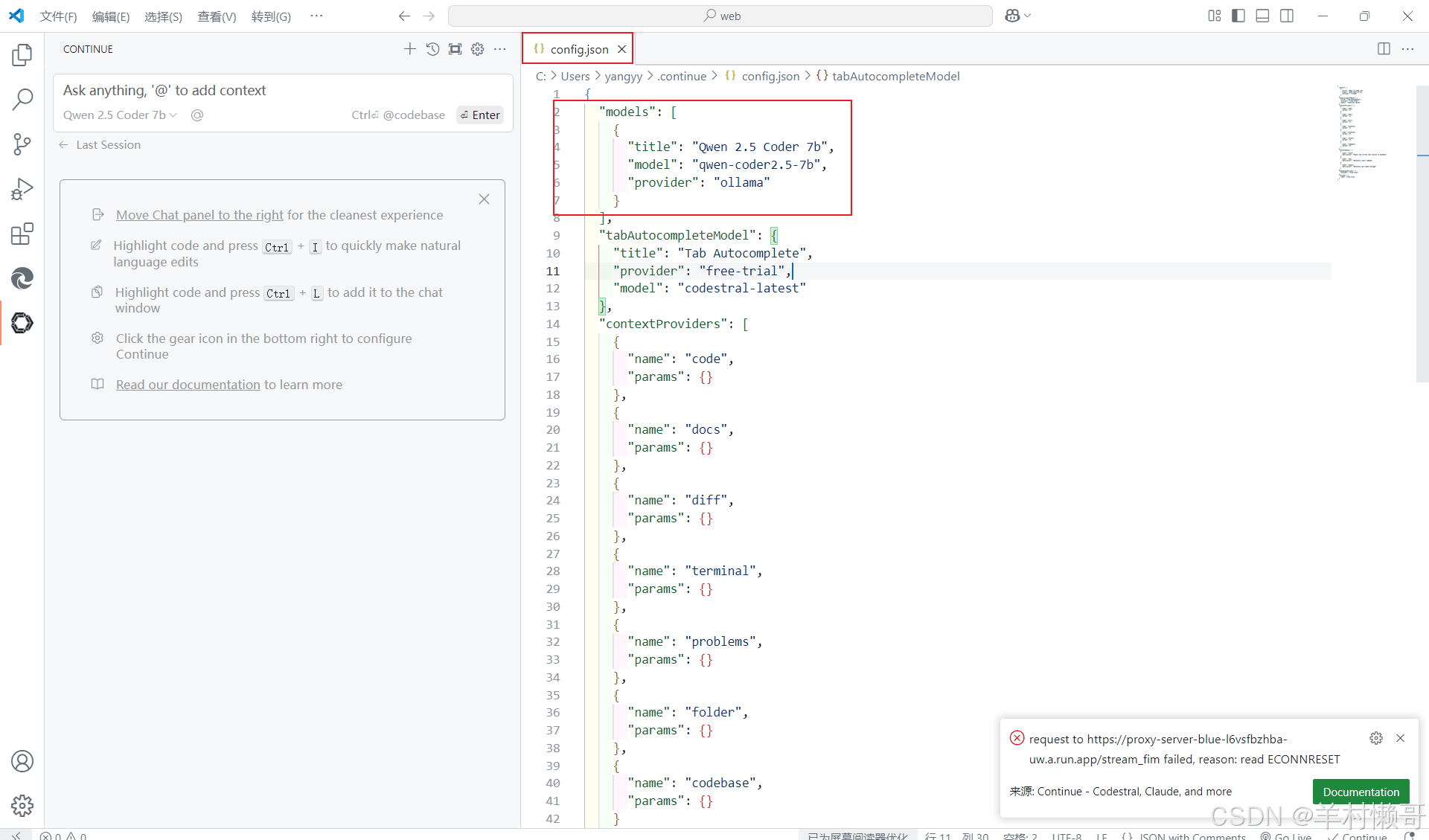 7. 创建完成后会出现一个配置文件,可以看到models这个部分,这里就是我们刚刚创建的模型,可以看到这上面的名字和我们本地的名字不相同,我们可以修改一下,如果相同的话可以不用修改