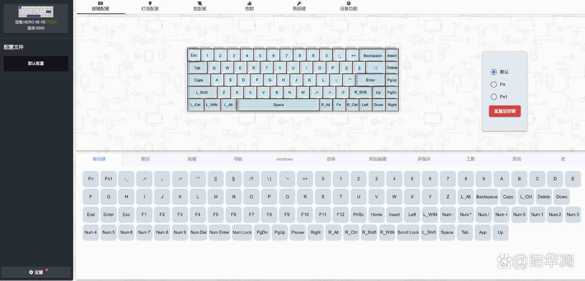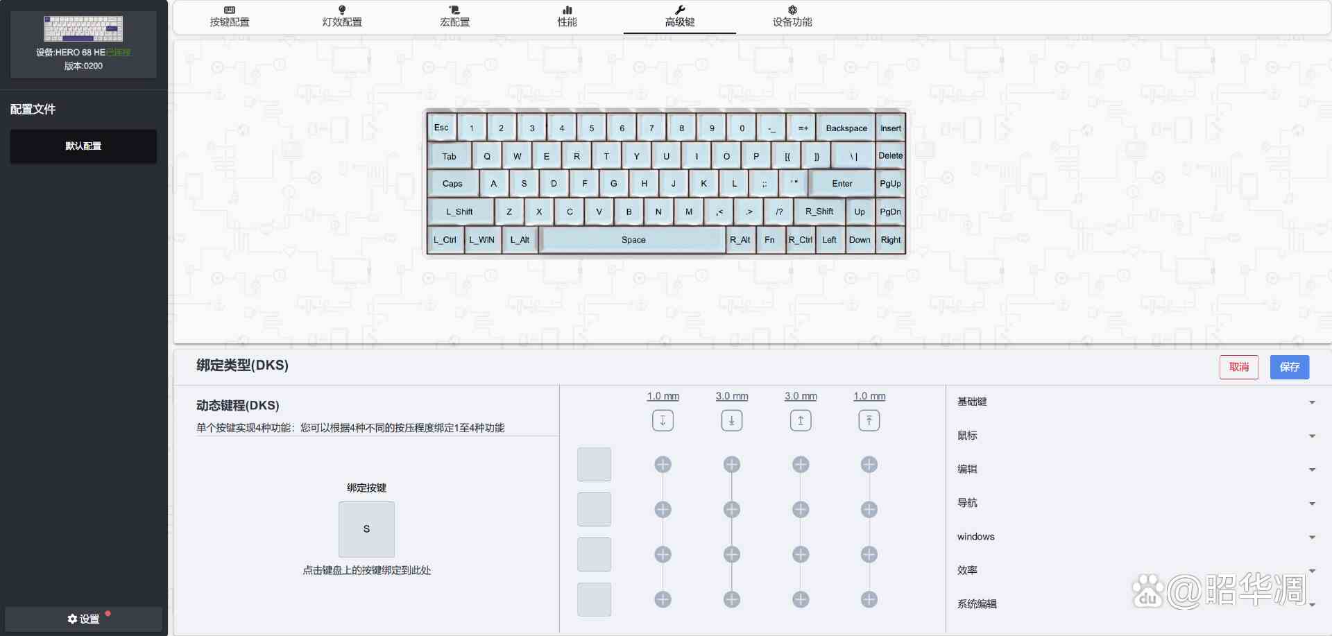 狼蛛提供了在线版驱动设置,从下面可以看到功能设置相当完善,完全是高端键盘既视感。