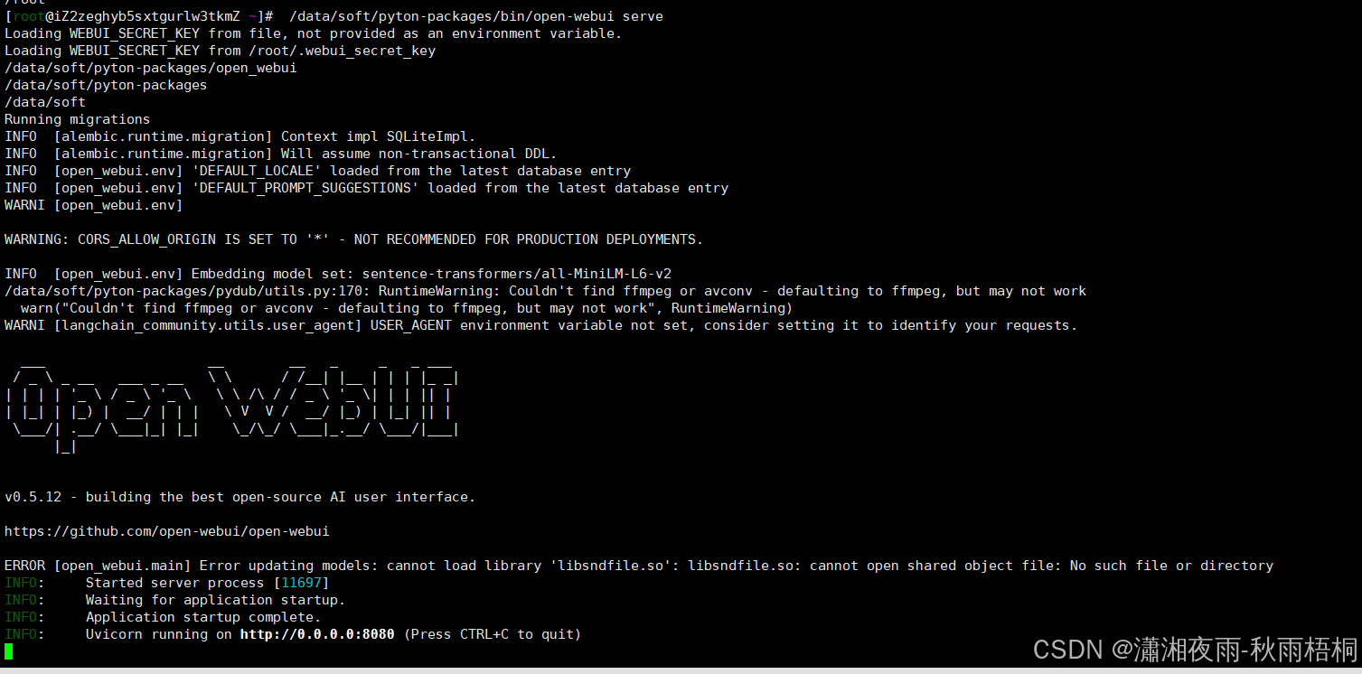 [root@iz2zeghyb5sxtgurlw3tkmz soft] /data/soft/pyton-packages/bin/open-webui serve