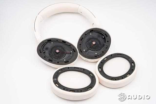耳罩内侧结构一览,采用卡扣式固定,能够便捷取放清洁或更换。
