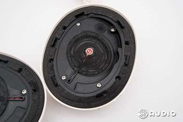 音腔盖板结构一览,通过螺丝固定,出音孔通过丝网防护,中间设置有后馈降噪麦克风。出音孔倾斜设计,更加符合人耳结构,使声音能够更有效的被耳朵接收。