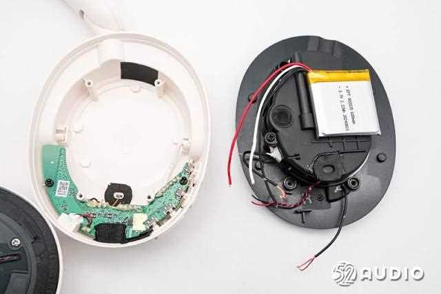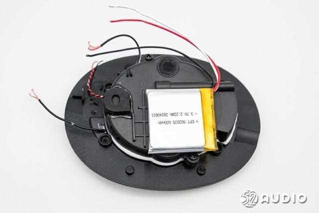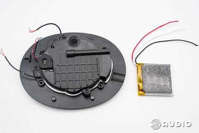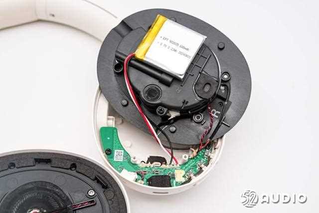 音腔盖板内侧结构一览,设置有电池和前馈降噪麦克风。