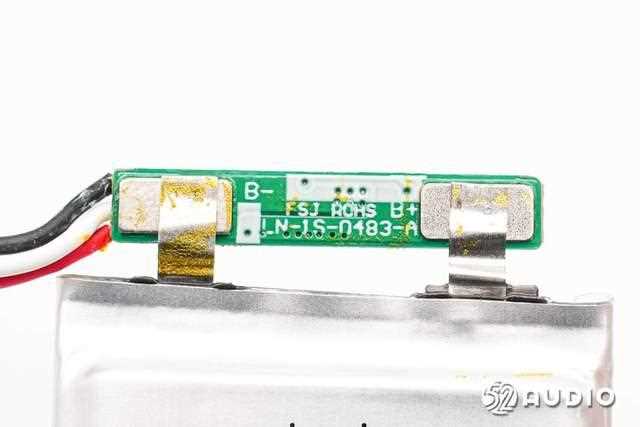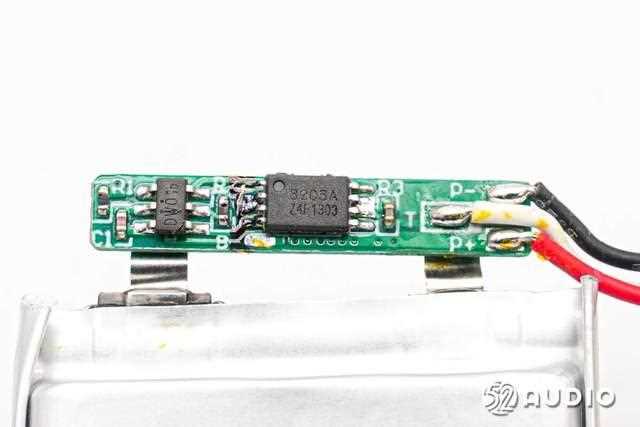 撕开绝缘保护,电池保护板电路一览,设置有锂电保护ic和mos管,以及检测电池温度的热敏电阻。