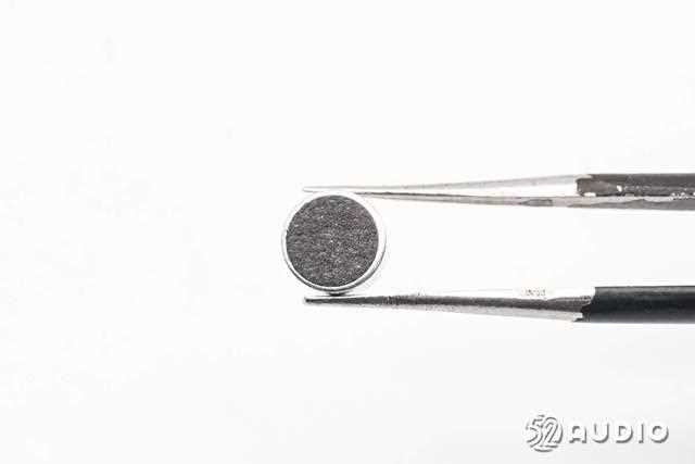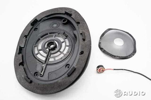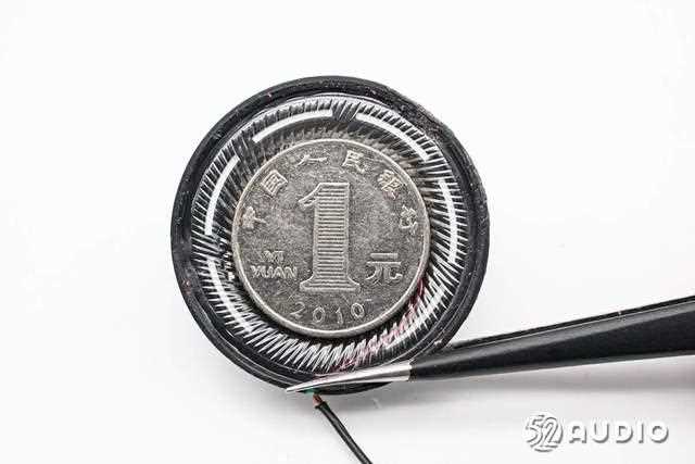 扬声器背面特写,四周调音孔通过阻尼纸覆盖,中间调音孔通过丝网防护。