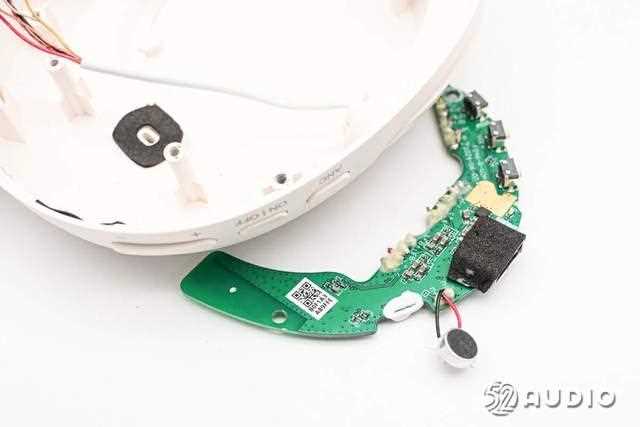 耳机内置通话麦克风特写,用于语音通话功能拾音。