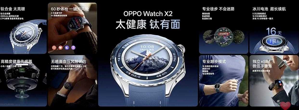 现已全面开启预订,新品即可享受15%的国补优惠!现在购买oppo watch x2,还能赠送价值149元的氟橡胶表带,享 6 期分期免息,还能参加以旧换新活动,最高可获1000元补贴。find n5用户,购买 watch x2 还能额外加赠运动硅胶表带。2月26日,oppo watch x2 将在各大电商平台及线下oppo门店同步开售。具体销售政策及活动内容,以官方商城、线上官方旗舰店和当地oppo门店为准,详情可咨询客服或门店工作人员。如此丰富的优惠福利,千万别错过,赶紧预订,一同开启智能健康生活的全新篇章!