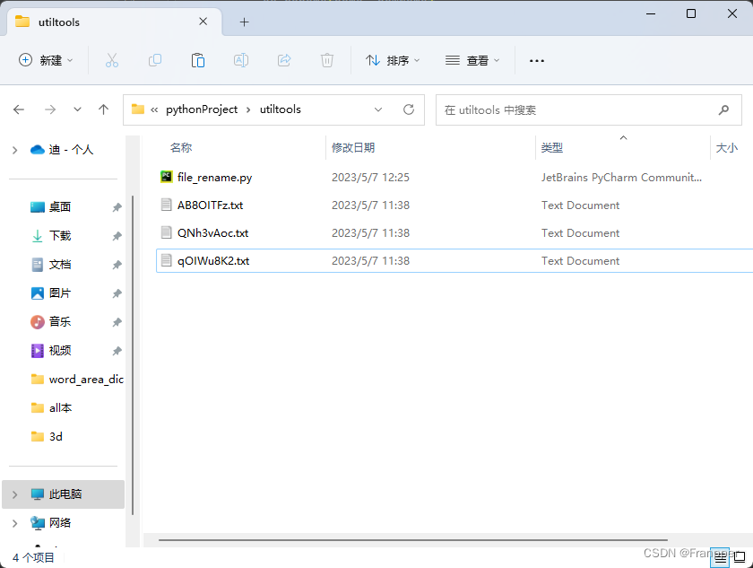 这个方法是将文件夹中特定类型文件随机命名,下图是文件原始名称