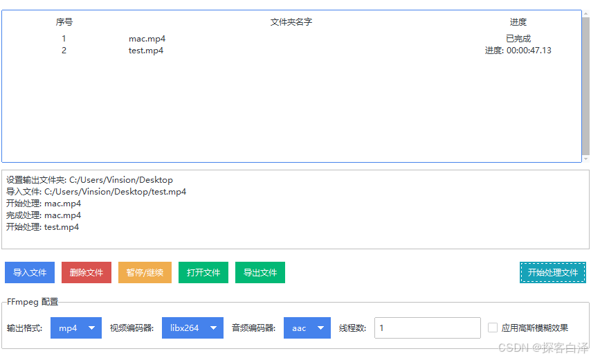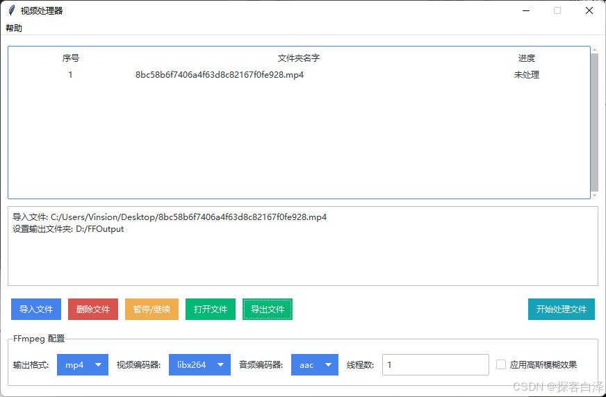 该视频处理器应用通过python与tkinter提供了一个强大而简洁的图形界面,允许用户批量处理视频文件。借助ffmpeg,用户不仅可以自由选择输出格式和编码器,还可以根据需求应用视频特效,如高斯模糊。多线程的支持使得处理多个视频文件更加高效,确保了在处理过程中能够灵活控制暂停、继续和取消操作。通过增强的文件管理和进度监控,用户能够轻松掌控整个视频处理过程。此工具对于需要批量转换视频格式或应用特效的用户非常实用,尤其适合需要高效处理大量视频文件的场景。