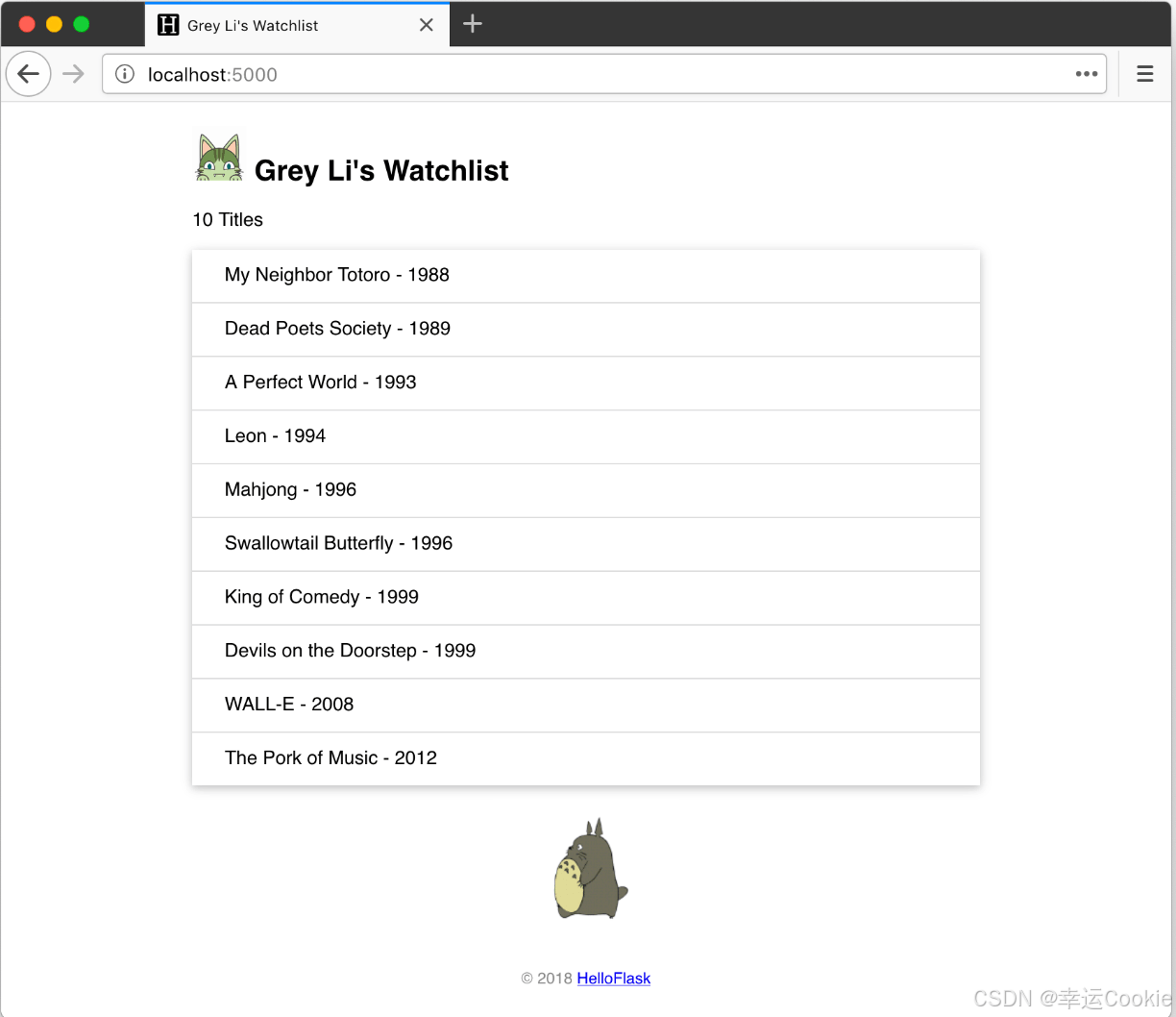 利用flask实现一个watchlist的web程序,部分代码和图片都是来自:flask 入门教程,我在此基础上修改了一下,最后的效果如下: