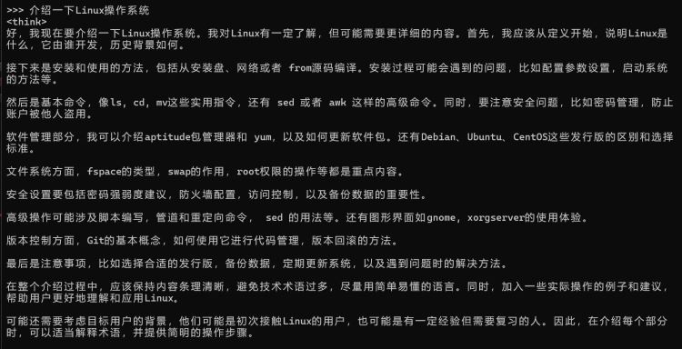 - 安装完成后,你可以通过命令行直接提问,测试模型的效果!