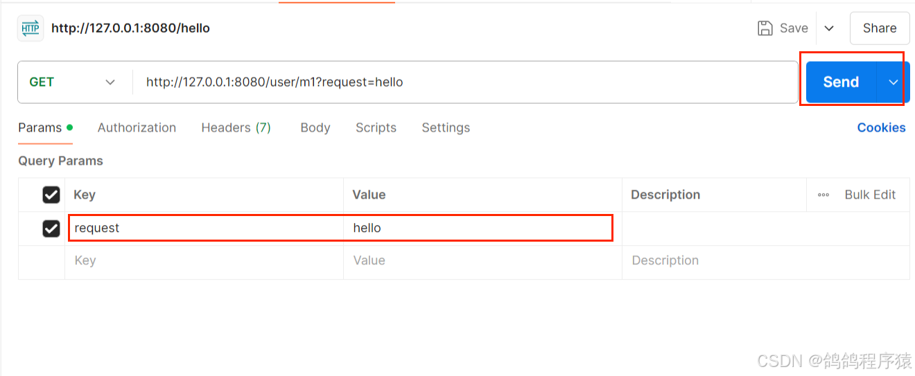 访问不同的路径, 就是发送不同的请求. 在发送请求时, 可能会带⼀些参数, 所以学习spring的请求,主要是学习如何传递参数到后端以及后端如何接收.