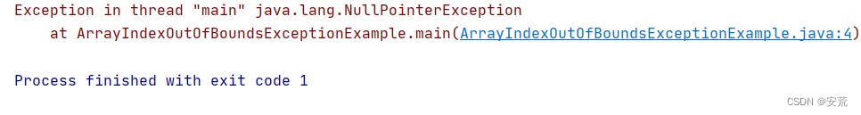 null:如果你调用一个方法并期望返回一个对象,但该方法返回了null,然后你尝试对返回的结果进行操作,就会触发nullpointerexception异常。