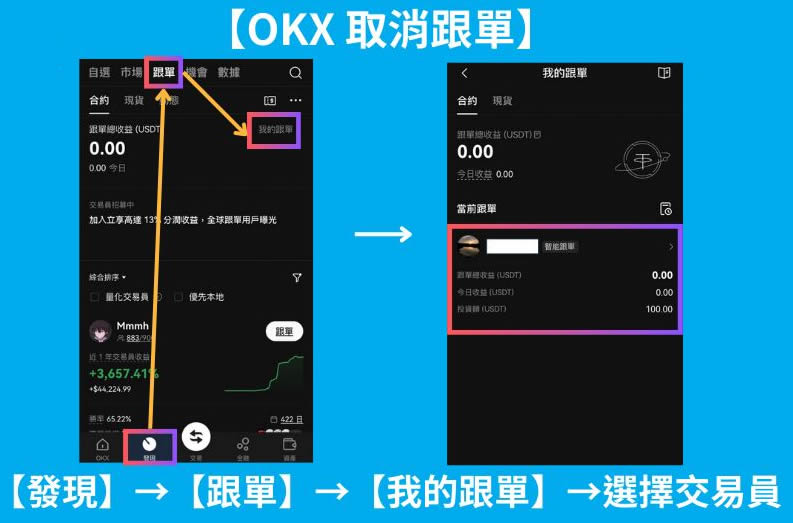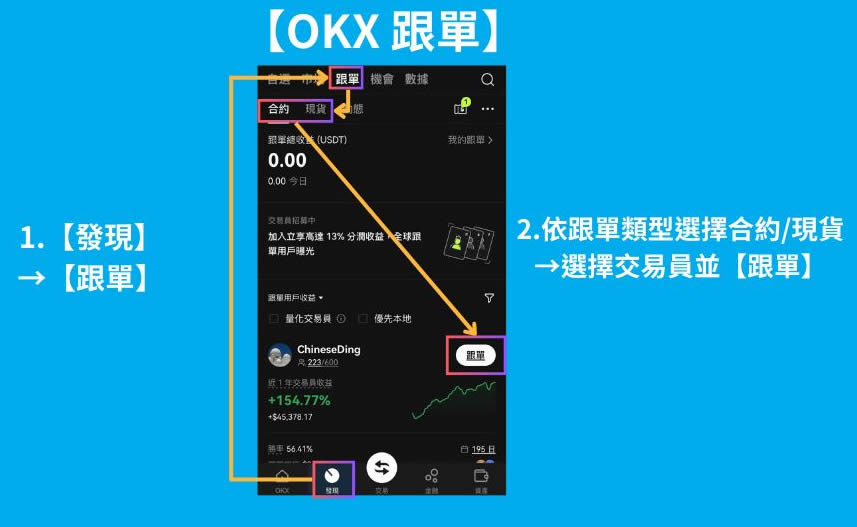 用户也可以再依个人的投资风险偏好,自行设定进出场机制、投资交易对、杠杆倍数等。在okx 合约跟单或是现货跟单都有支援,投资人可以在依照个人需求选择。