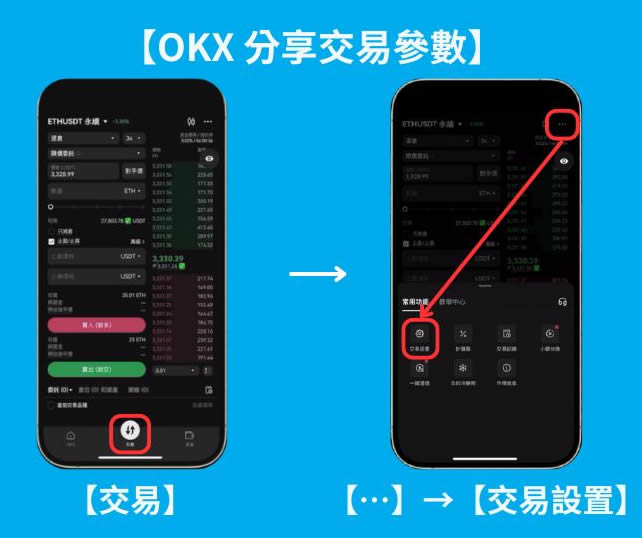 在要分享的仓位上,点击分享图示。分享连结后,其他okx 用户只要点击连结就会自动带入相同的交易参数。