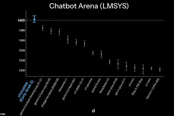 在lmsys聊天机器人竞技场评估中,grok-3的得分约为1400分,不仅超过了deepseek系列,也领先于其他主流大模型,包括gpt-4、claude等。