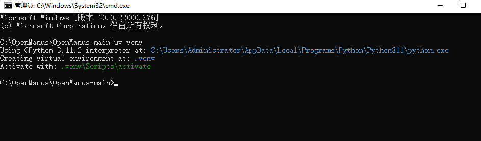 使用openmanus官方推荐uv安装方法:python3.11+uv