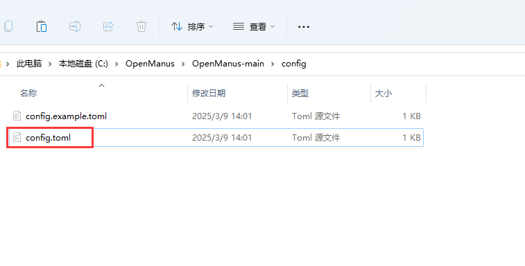 克隆或下载完成后,进入openmanus项目的根目录。在路径栏输入cmd,回车,进入openmanus根目录路径下的控制台。