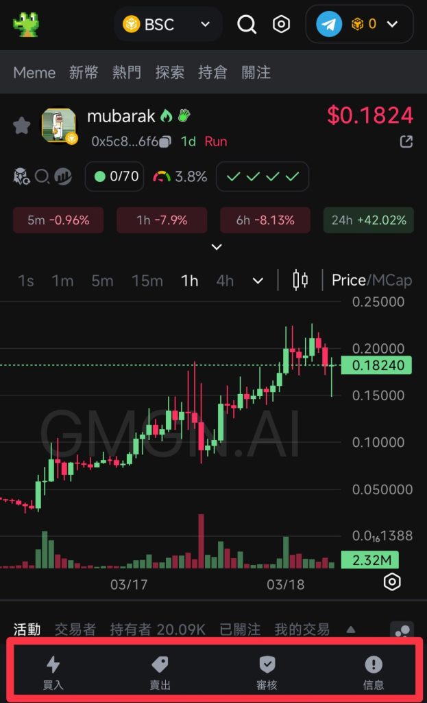 - 工具活用:开启「貔貅过滤」阻挡只能买不能卖的诈 骗币,使用「限价挂单」在目标价位自动抄底 / 逃顶.