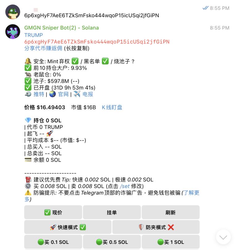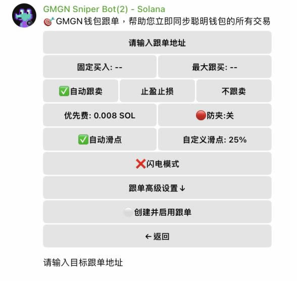 - 操作门槛高:gmgn 内建 telegram bot,让你轻松实现一键跟单。